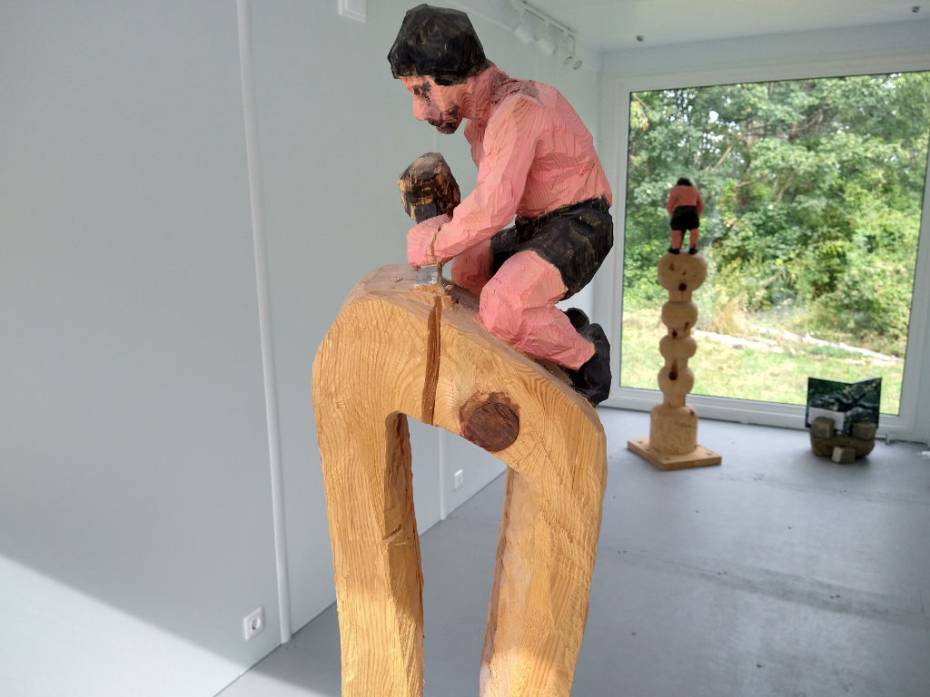 Two tall painted wooden steles, which focus on the physical work on the stone, were created at the symposium “50 Years Symposion Lindabrunn” 2019