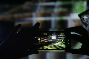 Mit Handy oder Smartphone können am Gelände verortete virtuelle Skulpturen unter freiem Himmel betrachtet werden