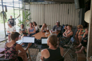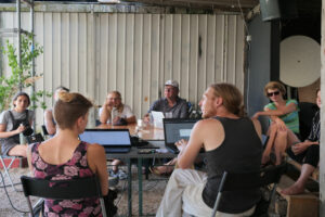 mit den Künstler*innen am Gelände durch den virtuellen Skulpturenpark